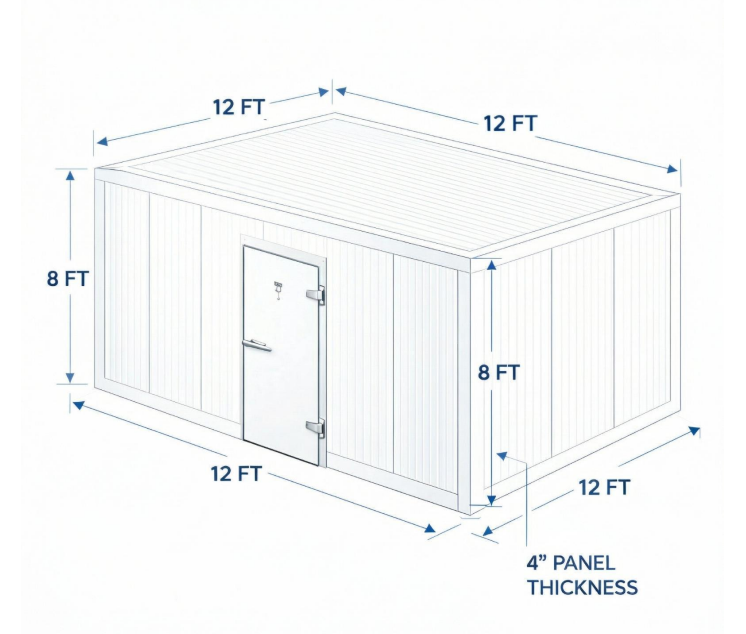 COLDMOOSE 12' × 12' × 8' H walk-in freezers are made to keep frozen foods at a steady sub-zero temperature for a long time. They are reliable even in tough commercial settings because they are made with high-quality insulation panels and efficient refrigeration systems. These units are perfect for restaurants, warehouses, and food distribution because they are strong, energy-efficient, and always work well.
